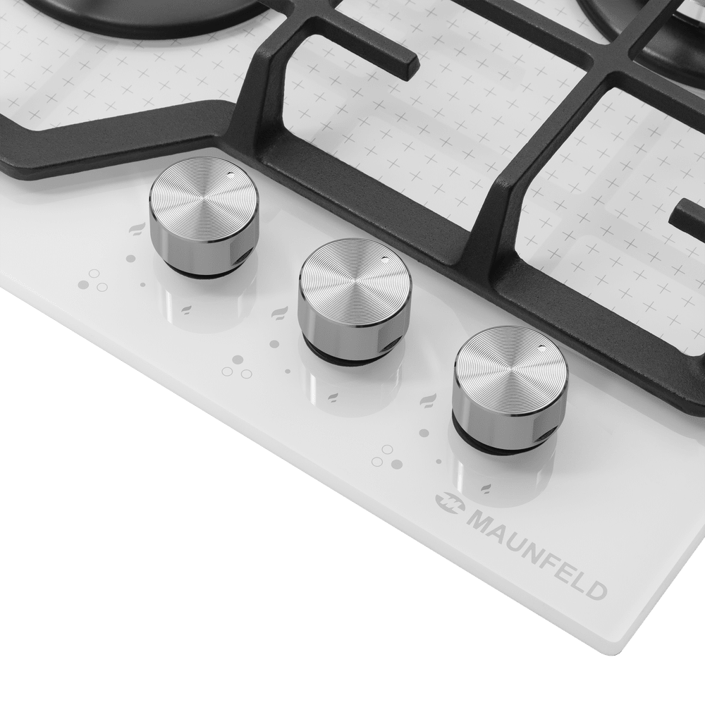 Выбор газовой варочной панели чаще всего обусловлен тем, что в частный дом или квартиру проведен именно газ в качестве обогрева. Работать с этой моделью довольно просто, так как мощность нагрева видна невооруженным взглядом — по силе огня в горелке. Количество конфорок в этой модели: 3.