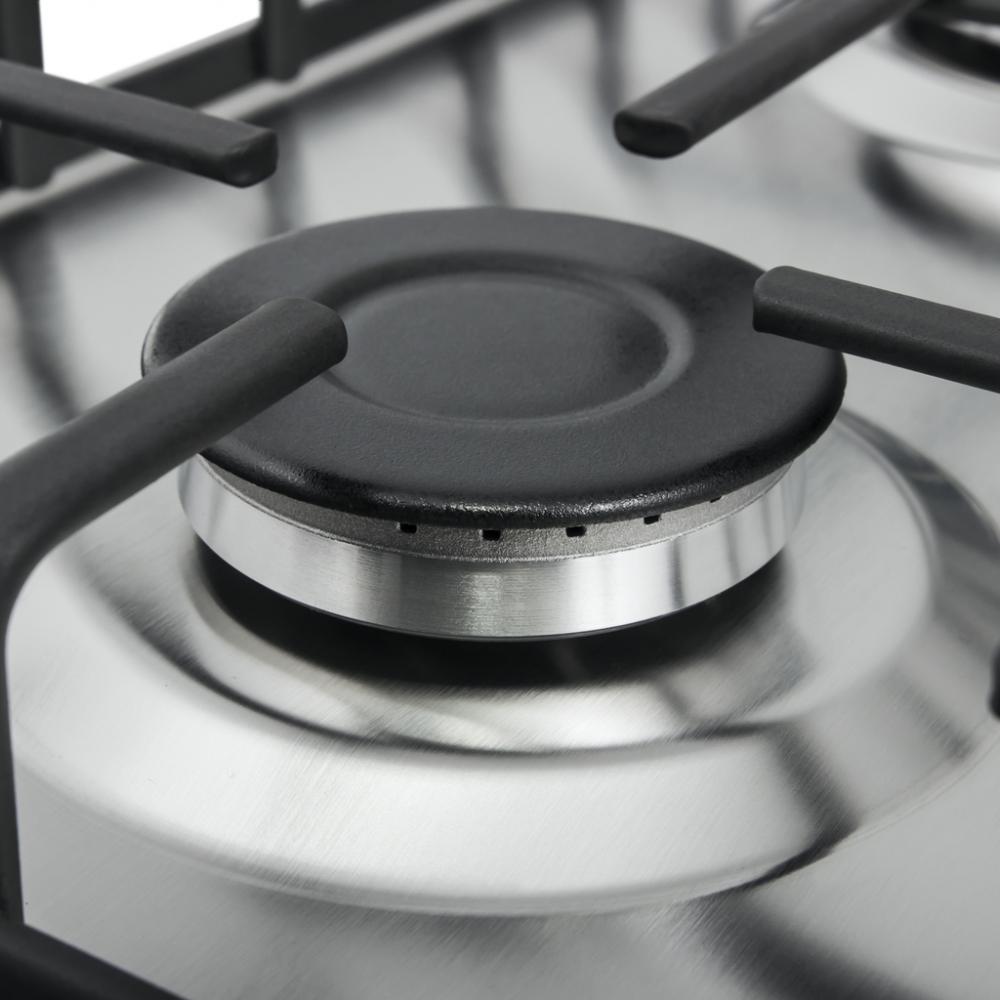 Каждая конфорка включает в себя, кроме рассекателя, основание и крышку. Крышка служит для отражения потока газа и поступления его в отверстия рассекателя. Мощность конфорки зависит от ее диаметра: в некоторых горелках имеется не один, а два или три контура пламени. Безопасность использования гарантирует система «газ-контроль», мгновенно останавливающая подачу газа при угасании пламени. Для размещения посуды на поверхности служит сплошная или раздельная решетка, которая чаще всего изготавливается из чугуна.