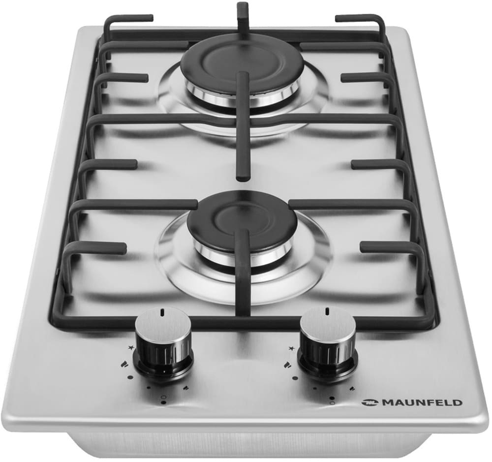 Выбор газовой варочной панели чаще всего обусловлен тем, что в частный дом или квартиру проведен именно газ в качестве обогрева. Работать с этой моделью довольно просто, так как мощность нагрева видна невооруженным взглядом — по силе огня в горелке. Количество конфорок в этой модели: 2.