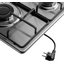 Выбор газовой варочной панели чаще всего обусловлен тем, что в частный дом или квартиру проведен именно газ в качестве обогрева. Работать с этой моделью довольно просто, так как мощность нагрева видна невооруженным взглядом — по силе огня в горелке. Количество конфорок в этой модели: 3.
