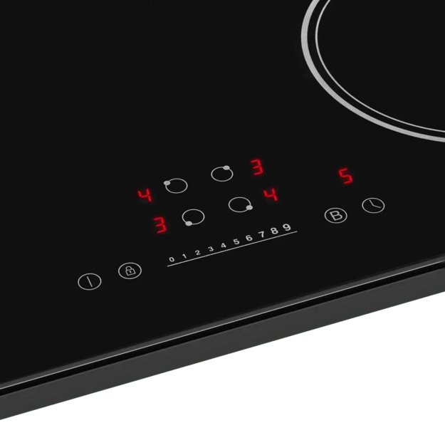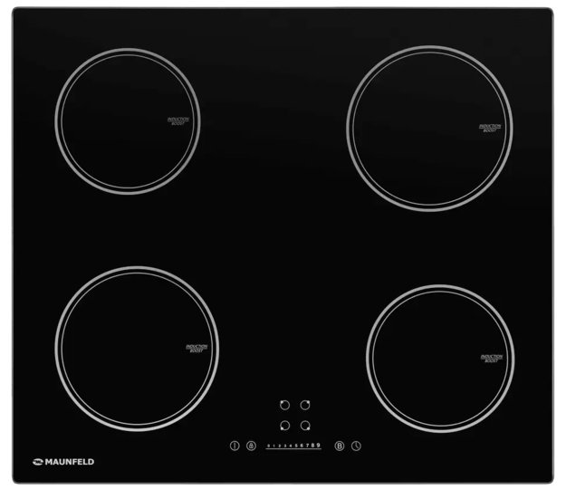 Варочная панель работает на индукционном нагреве — это значит, что повышается температура непосредственно посуды, в которой готовится блюдо. Таким образом промежуточная ступень с предварительным нагревом конфорки пропускается — сокращается время, повышается безопасность. Количество конфорок в этой модели: 4.