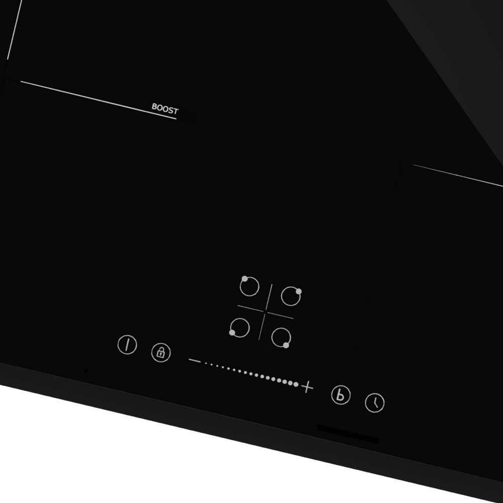 Варочная панель работает на индукционном нагреве — это значит, что повышается температура непосредственно посуды, в которой готовится блюдо. Таким образом промежуточная ступень с предварительным нагревом конфорки пропускается — сокращается время, повышается безопасность. Количество конфорок в этой модели: 4.