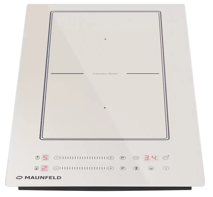 Варочная панель работает на индукционном нагреве — это значит, что повышается температура непосредственно посуды, в которой готовится блюдо. Таким образом промежуточная ступень с предварительным нагревом конфорки пропускается — сокращается время, повышается безопасность. Количество конфорок в этой модели: 2.