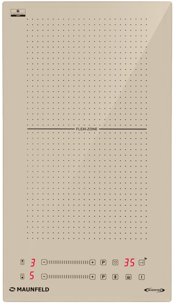 Варочная панель работает на индукционном нагреве — это значит, что повышается температура непосредственно посуды, в которой готовится блюдо. Таким образом промежуточная ступень с предварительным нагревом конфорки пропускается — сокращается время, повышается безопасность. Количество конфорок в этой модели: 2.