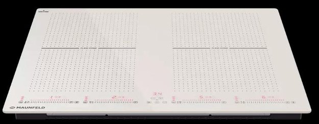 Варочная панель работает на индукционном нагреве — это значит, что повышается температура непосредственно посуды, в которой готовится блюдо. Таким образом промежуточная ступень с предварительным нагревом конфорки пропускается — сокращается время, повышается безопасность. Количество конфорок в этой модели: 4.