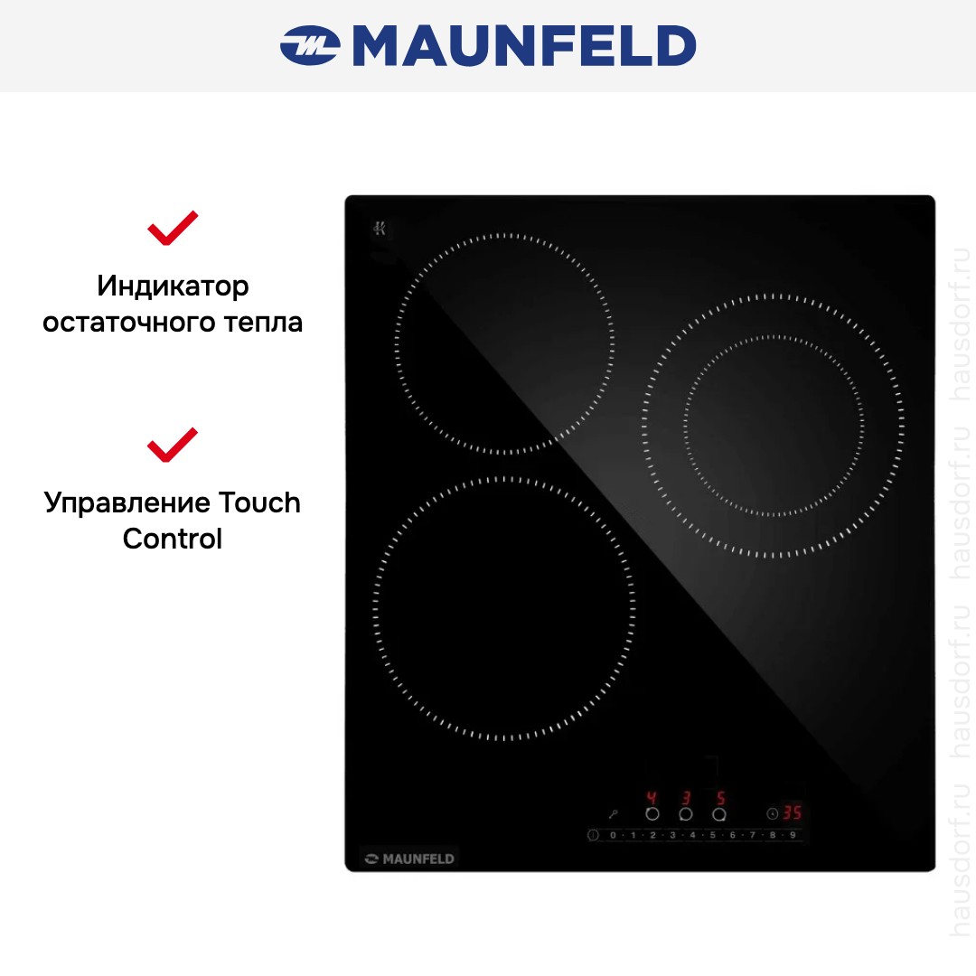 Цвет — черный. Благодаря отсутствию рамки она отлично впишется в интерьер и не займет лишнее место на столешнице, которое можно использовать для работы. Материал самой поверхности: стеклокерамика. Управление этой моделью электронное. Для переключения уровней нагрева, выбора функций используются следующие переключатели: сенсорные/TouchControl. Продвинутая система контроля за прибором делают его современным и отвечающим на главные запросы покупателя.