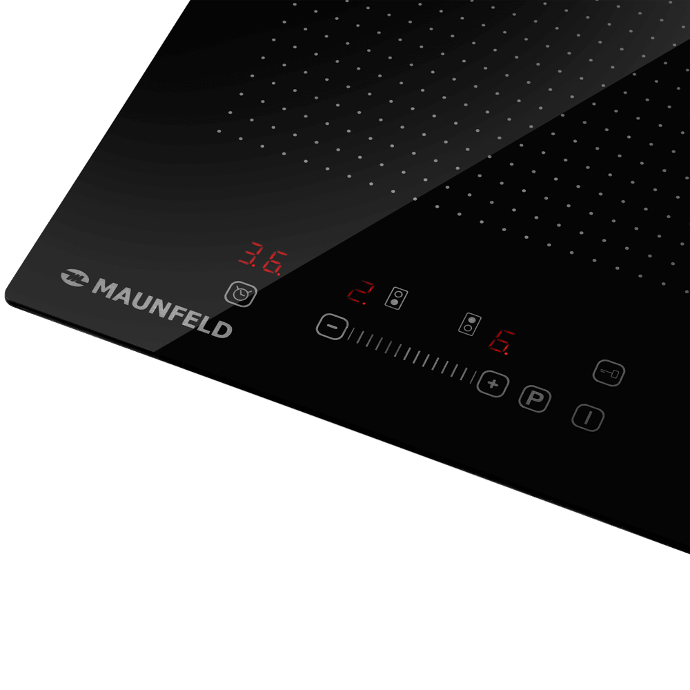 Варочная панель работает на индукционном нагреве — это значит, что повышается температура непосредственно посуды, в которой готовится блюдо. Таким образом промежуточная ступень с предварительным нагревом конфорки пропускается — сокращается время, повышается безопасность. Количество конфорок в этой модели: 2.