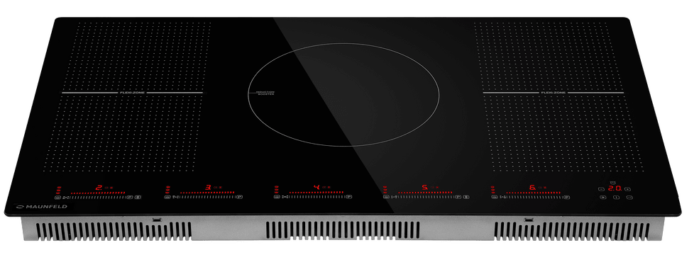Варочная панель работает на индукционном нагреве — это значит, что повышается температура непосредственно посуды, в которой готовится блюдо. Таким образом промежуточная ступень с предварительным нагревом конфорки пропускается — сокращается время, повышается безопасность. Количество конфорок в этой модели: 5.