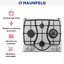 Maunfeld GH624S-ECI — газовая варочная панель шириной 60 см. Чугунные решетки оригинальной формы гарантируют надежное удержание посуды и придают модели современный вид. WOK-конфорка с тремя рядами пламени оптимально подходит для приготовления блюд в посуде с выпуклым дном. Кроме того, высокая мощность ускоряет процесс приготовления. Нестандартное расположение горелок — это не просто дизайнерская концепция, но и максимальное удобство для пользователя при размещении посуды и готовке сразу же на четырех зонах одновременно. Ручки управления расположены по бокам поверхности, снабжены графикой распознавания и легким, плавным ходом для точной настройки мощности.