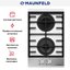 Maunfeld MGHG.32.21W — газовая варочная панель шириной 32 см. Модель изготовлена из прочного стекла немецкой марки SCHOTT и дополнена алюминиевой вставкой. Система защиты от утечек и технология автоматического электроподжига служат безопасной эксплуатации устройства. На поверхности располагаются две конфорки разной мощности. Подобное конструктивное решение позволяет без проблем готовить на двух конфорках одновременно.