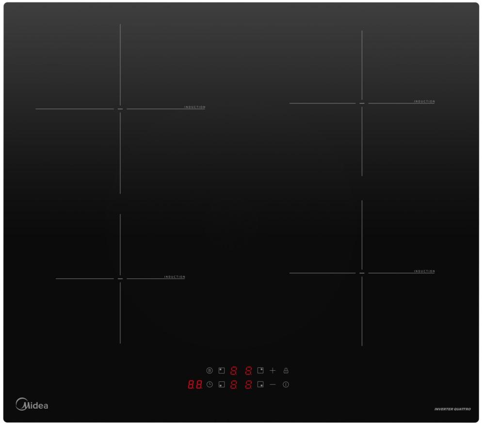 Варочная панель работает на индукционном нагреве — это значит, что повышается температура непосредственно посуды, в которой готовится блюдо. Таким образом промежуточная ступень с предварительным нагревом конфорки пропускается — сокращается время, повышается безопасность. Количество конфорок в этой модели: 4.