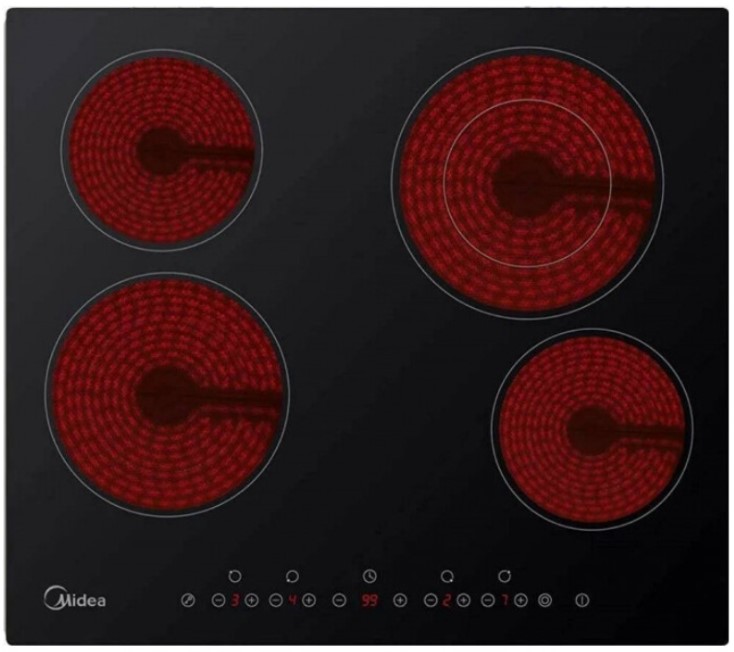 Данная варочная панель имеет классический электрический нагрев, при котором сначала раскаляются конфорки (точнее элементы, скрытые под поверхностью), а затем передают это тепло посуде. Разобраться, как с ней работать, просто даже пожилым людям, привыкшим к плитам. Количество конфорок в этой модели: 4.