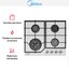 Выбор газовой варочной панели чаще всего обусловлен тем, что в частный дом или квартиру проведен именно газ в качестве обогрева. Работать с этой моделью довольно просто, так как мощность нагрева видна невооруженным взглядом — по силе огня в горелке. Количество конфорок в этой модели: 4.