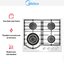 Выбор газовой варочной панели чаще всего обусловлен тем, что в частный дом или квартиру проведен именно газ в качестве обогрева. Работать с этой моделью довольно просто, так как мощность нагрева видна невооруженным взглядом — по силе огня в горелке. Количество конфорок в этой модели: 4.