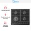 Выбор газовой варочной панели чаще всего обусловлен тем, что в частный дом или квартиру проведен именно газ в качестве обогрева. Работать с этой моделью довольно просто, так как мощность нагрева видна невооруженным взглядом — по силе огня в горелке. Количество конфорок в этой модели: 4.