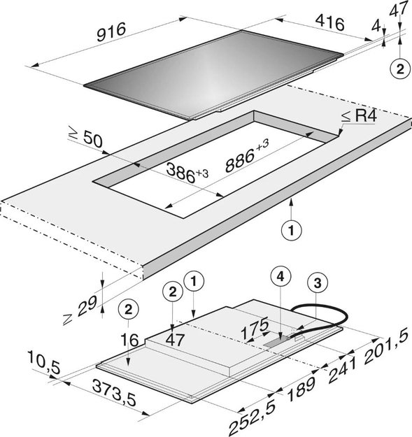 Электрические и индукционные варочные панели из стали, эмали и стеклокерамики имеют толщину от 4 до 5,5 cм, но выглядят более низкими, так как на них отсутствуют выступающие горелки. Как правило, подробные требования к толщине столешницы для установки приводятся в руководстве пользователя.
