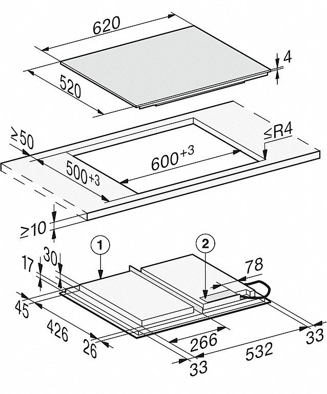 Глубина варочной панели представляет собой расстояние от ближайшей к пользователю ее точки до самой дальней. В первую очередь глубина определяется соответствующими размерами столешницы, куда варочная панель будет встроена, и уже во вторую — количеством и расположением конфорок.