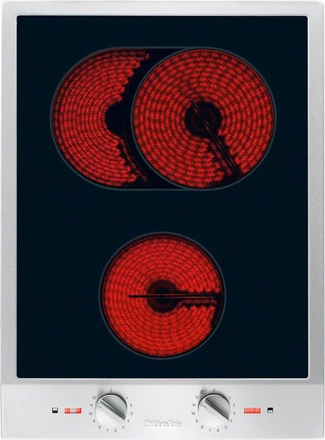 Miele CS 1122 E — узкая варочная поверхность в стальном обрамлении. Модель оборудована двумя конфорками типа Hi-Light, одна из которых имеет овальную зону расширения. В случае перегрева прибор отключается автоматически, что гарантирует его безопасную эксплуатацию.