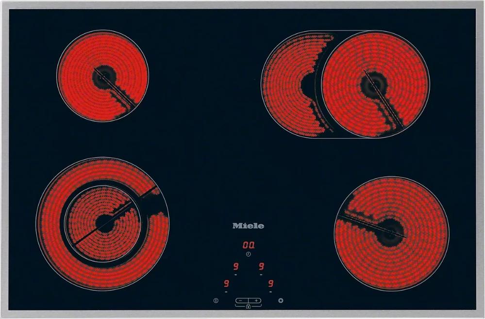 Miele KM 5617 — стеклокерамическая варочная поверхность с сенсорным управлением EasyControl II. Модель характеризуется независимым типом установки и снабжена четырьмя разноразмерными конфорками типа Hi-Light. Система индикации остаточного тепла оповещает об еще не остывших зонах нагрева, снижая тем самым риск получения ожогов.