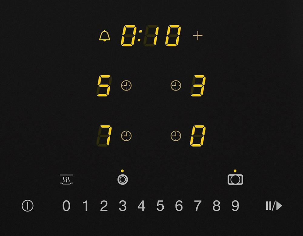 Таймер варочной панели — это устройство, позволяющее задавать время приготовления пищи. По истечении указанного времени таймер подает звуковой сигнал о необходимости отключения конфорки или выключает ее самостоятельно в зависимости от модели. С помощью этой опции можно запрограммировать отключение любой конфорки или всех конфорок одновременно.