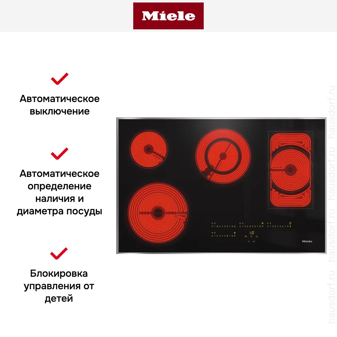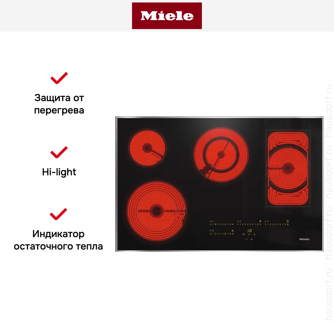 Варочная панель Miele KM 6564 FR — это элегантное и технологичное решение для современной кухни, сочетающее в себе безупречный дизайн, высокую функциональность и немецкое качество исполнения. Модель представляет собой независимую электрическую поверхность, что обеспечивает гибкость при монтаже и возможность установки в любом удобном месте кухонного гарнитура. Её габариты — 5×80,6×52,6 см — гармонично вписываются в стандартные модули, а рекомендуемые размеры ниши (4,3 см по высоте, 78 см по ширине и 50 см по глубине) гарантируют точную и аккуратную врезку. Панель выполнена в строгом и универсальном чёрном цвете и дополнена рамкой из полированной нержавеющей стали, что придаёт ей современный, но сдержанный вид, подходящий как для минималистичных, так и для классических интерьеров. Края тщательно обработаны, а металлическая окантовка не только подчёркивает премиальный статус устройства, но и обеспечивает дополнительную защиту от механических повреждений. Благодаря продуманной конструкции и качественным материалам поверхность легко очищается от загрязнений и сохраняет безупречный внешний вид даже при интенсивном использовании. Электрическое подключение обеспечивает стабильную работу и совместимость с большинством бытовых электросетей. Эта варочная панель станет центральным элементом кухни, где важны эстетика, надёжность и комфорт при повседневной готовке.