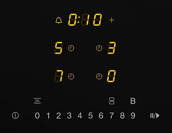 Таймер варочной панели — это устройство, позволяющее задавать время приготовления пищи. По истечении указанного времени таймер подает звуковой сигнал о необходимости отключения конфорки или выключает ее самостоятельно в зависимости от модели. С помощью этой опции можно запрограммировать отключение любой конфорки или всех конфорок одновременно.