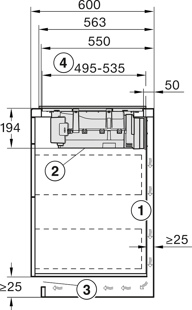 Применение охлаждающего вентилятора способствует надежности и долговечности прибора, однако увеличивает уровень шума. Следует помнить, что для отвода теплого воздуха между варочной панелью и духовкой, а также рядом стоящей мебелью должны оставаться зазоры.