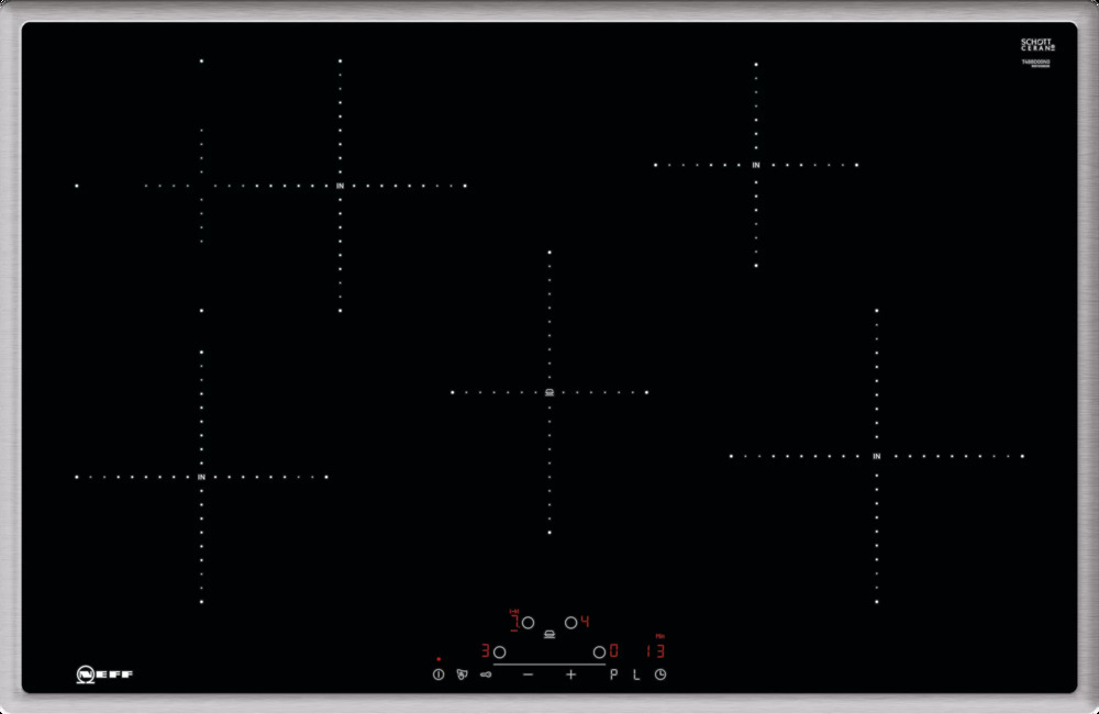 Индукционная варочная панель Neff T48BD00N0 — это современное решение для кухни, которое сочетает в себе стиль, функциональность и высокую эффективность. Эта модель отличается уникальным дизайном, выполненным в черном цвете с рамкой из нержавеющей стали. Габариты составляют 5.5×79.5×51.7 см, что позволяет удобно встроить ее в любую кухонную мебель. При этом размеры ниши для встраивания составляют 78×55 см. Это обеспечивает гармоничное сочетание с общим интерьером кухни и не нарушает ее эргономику.