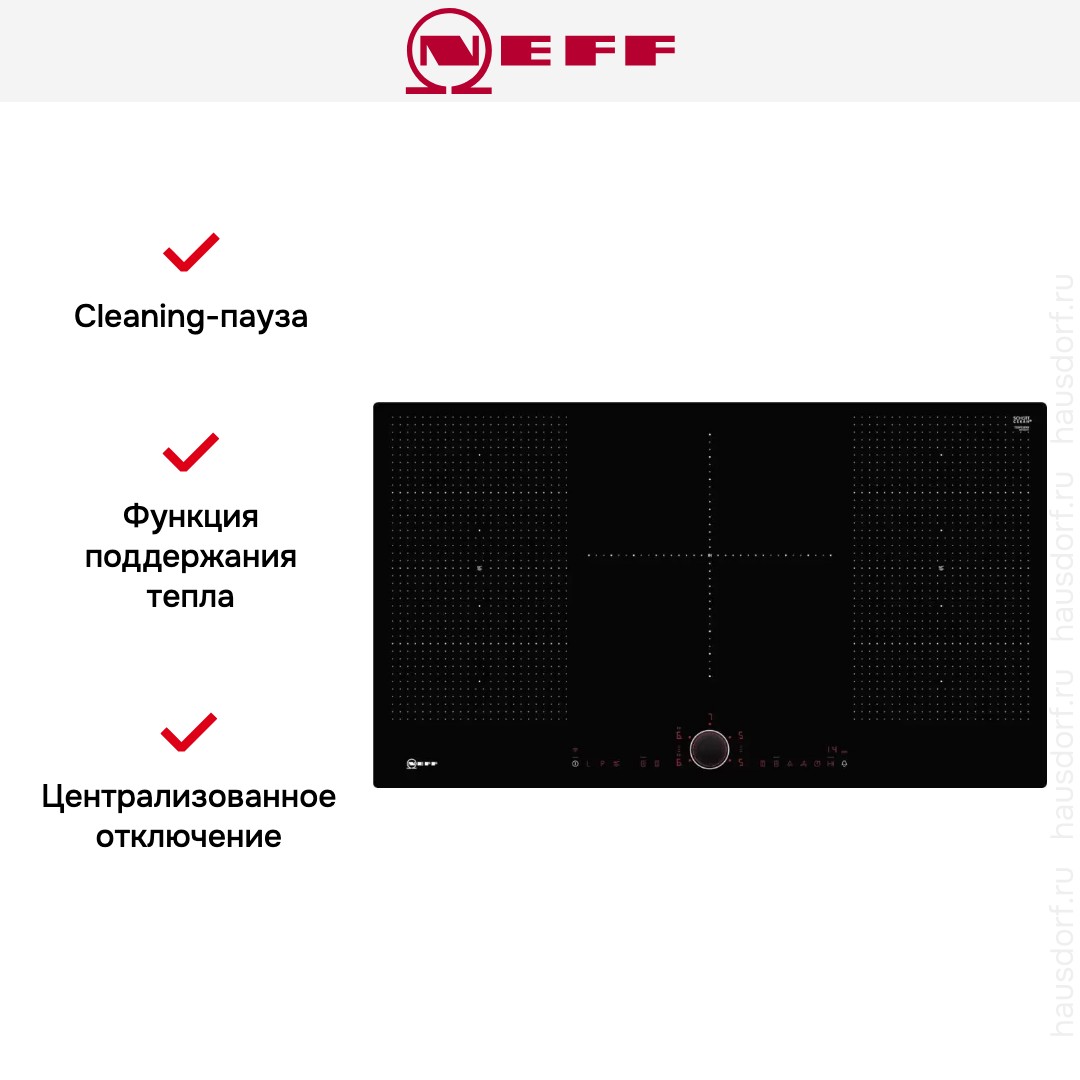 Варочная панель Neff T59PS5RX0 — современная и многофункциональная модель, которая не только отличается повышенной безопасностью при эксплуатации, но и комфортом при приготовлении любых блюд. На большой поверхности, шириной 90 сантиметров, удобно расположить посуду с любым диаметром. Прочная стеклокерамика устойчива к высоким температурам, а также образованию глубоких царапин. Поверхность легко очищается от загрязнений, что делает прибор практичным вариантом. Индукционный нагрев отличается высокой эффективностью и низким потреблением электроэнергии. Каждая конфорка оборудована таймером, который можно использовать как для отключения, так и для информирования пользователя о том, что установленное время истекло. Варочная панель Неф T59PS5RX0 имеет 17 ступеней мощности, что позволяет подобрать оптимальные условия для любого рецепта.