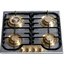 Для варочных панелей в стиле кантри, ампир или классическом характерны латунные ручки из сплава меди и цинка, которые смотрятся благородно и выигрышно. Реже производятся модели, имеющие золотистую или медную фурнитуру.