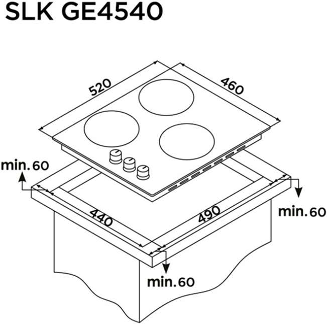 Стандартная ширина устройства составляет около 59–60 см: таковы наиболее востребованные четырехконфорочные модели. Подобный размер облегчает встраивание варочной панели в стандартную кухонную столешницу.