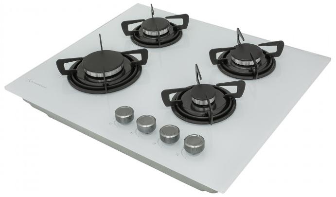 Выбор газовой варочной панели чаще всего обусловлен тем, что в частный дом или квартиру проведен именно газ в качестве обогрева. Работать с этой моделью довольно просто, так как мощность нагрева видна невооруженным взглядом — по силе огня в горелке. Количество конфорок в этой модели: 4.