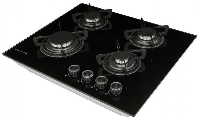 Выбор газовой варочной панели чаще всего обусловлен тем, что в частный дом или квартиру проведен именно газ в качестве обогрева. Работать с этой моделью довольно просто, так как мощность нагрева видна невооруженным взглядом — по силе огня в горелке. Количество конфорок в этой модели: 4.