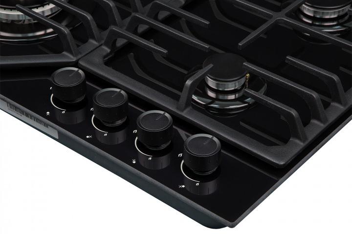Выбор газовой варочной панели чаще всего обусловлен тем, что в частный дом или квартиру проведен именно газ в качестве обогрева. Работать с этой моделью довольно просто, так как мощность нагрева видна невооруженным взглядом — по силе огня в горелке. Количество конфорок в этой модели: 4.