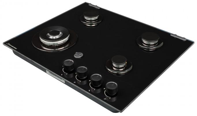 Цвет — черный. Благодаря отсутствию рамки она отлично впишется в интерьер и не займет лишнее место на столешнице, которое можно использовать для работы. Открытый огонь не страшен ни вашей посуде, ни вам, так как горелки надежно закрыты решетками. Материал самой поверхности: закаленное стекло. Управление этой моделью механическое. Для переключения уровней нагрева, выбора функций используются следующие переключатели: поворотные. Простая система контроля за прибором делают его более универсальным, ведь разобраться сможет кто угодно.