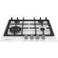 Белая газовая панель с эмалированной поверхностью и поворотными переключателями из нержавеющей стали. Три типа конфорок позволяют легко и быстро готовить в посуде разного объема. Вы можете использовать стандартную, экономичную зону нагрева, WOK.