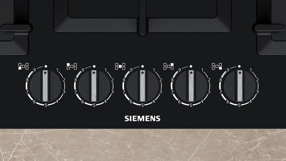 Модель Сименс EP7A6QB90 входит в дизайн-линейку: iQ500. Цвет — черный. Благодаря отсутствию рамки она отлично впишется в интерьер и не займет лишнее место на столешнице, которое можно использовать для работы. Открытый огонь не страшен ни вашей посуде, ни вам, так как горелки надежно закрыты решетками. Материал самой поверхности: закаленное стекло. Управление этой моделью механическое. Для переключения уровней нагрева, выбора функций используются следующие переключатели: поворотные. Простая система контроля за прибором делают его более универсальным, ведь разобраться сможет кто угодно.