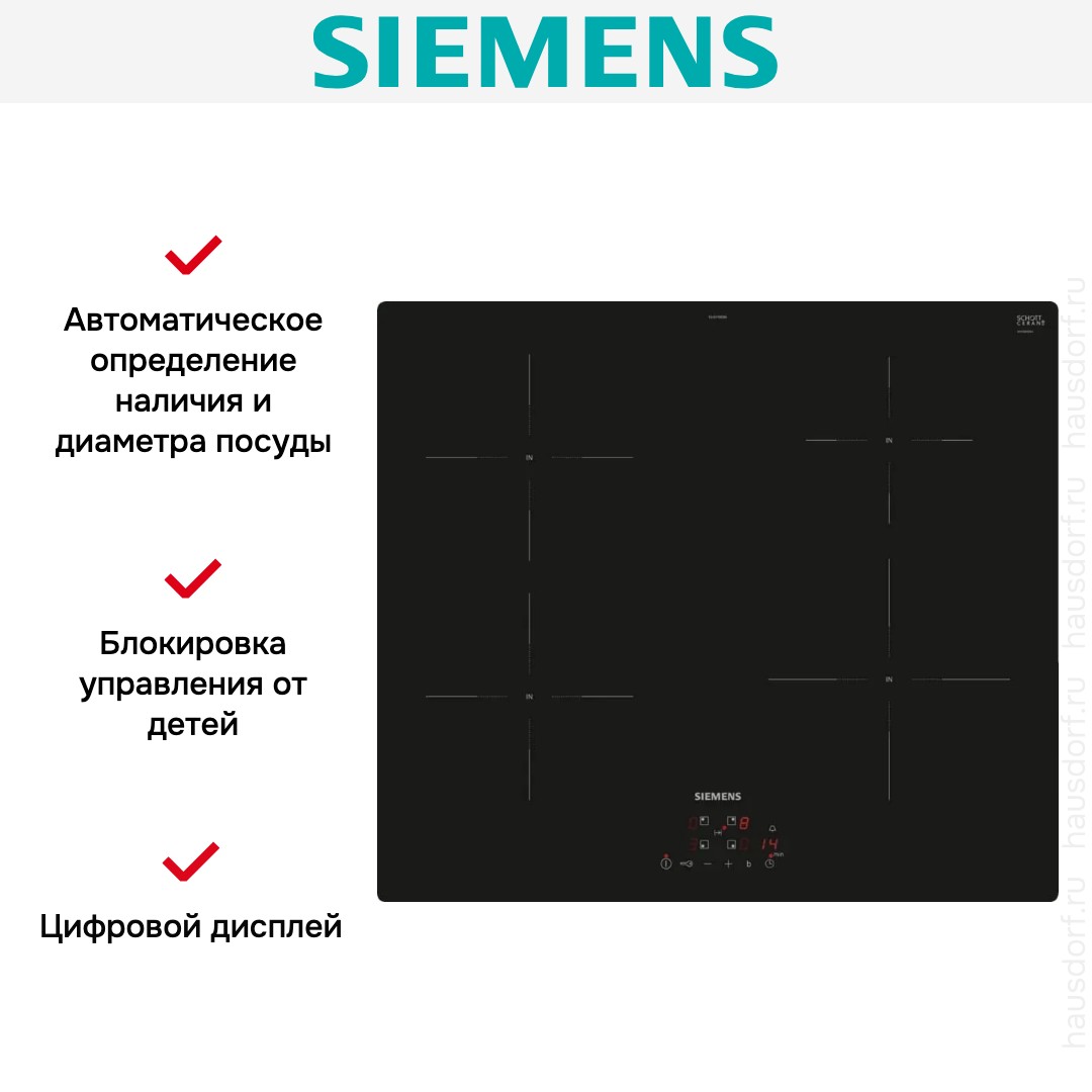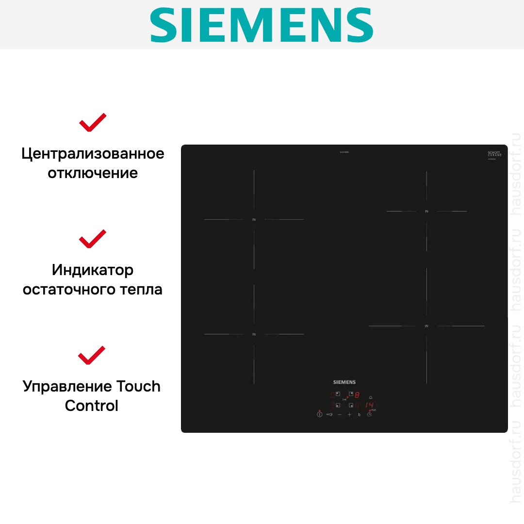 Модель Сименс EU611BEB6E входит в дизайн-линейку: iQ100. Цвет — черный. Благодаря отсутствию рамки она отлично впишется в интерьер и не займет лишнее место на столешнице, которое можно использовать для работы. Материал самой поверхности: стеклокерамика. Управление этой моделью электронное. Для переключения уровней нагрева, выбора функций используются следующие переключатели: сенсорные/TouchControl. Продвинутая система контроля за прибором делают его современным и отвечающим на главные запросы покупателя.