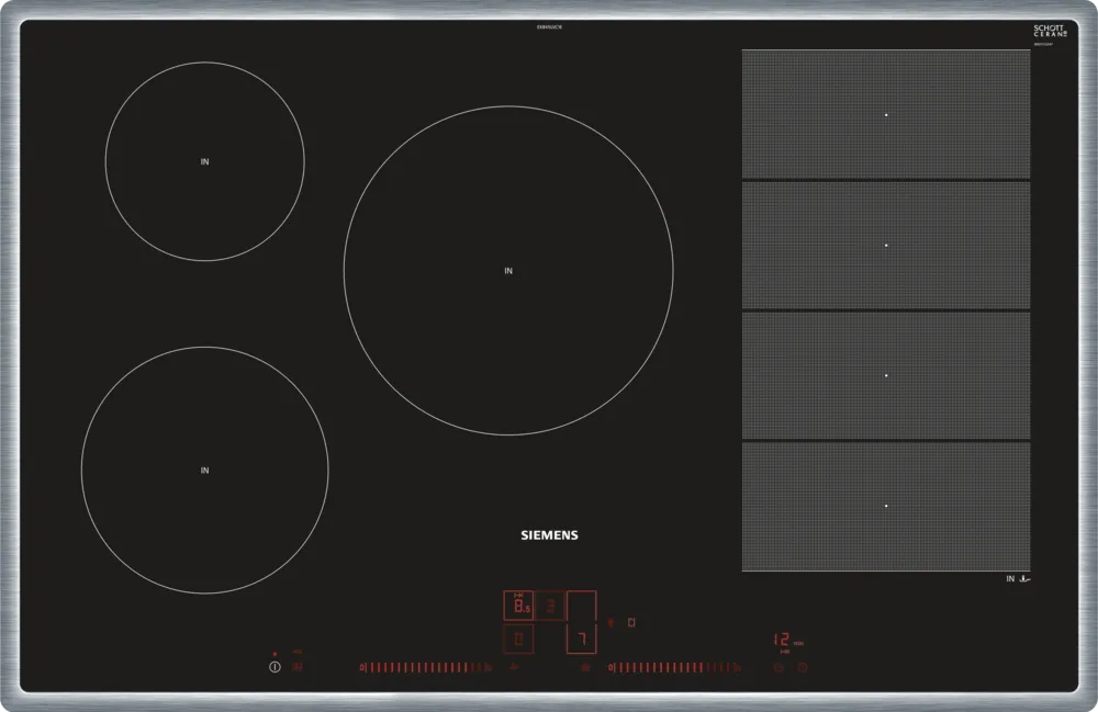 Модель Сименс EX845LVC1E входит в дизайн-линейку: iQ700. Цвет — черный. Благодаря рамке она отделена от рабочей зоны и прочнее закреплена на столешнице. Материал самой поверхности: стеклокерамика. Управление этой моделью электронное. Для переключения уровней нагрева, выбора функций используются следующие переключатели: сенсорные/TouchControl. Продвинутая система контроля за прибором делают его современным и отвечающим на главные запросы покупателя.