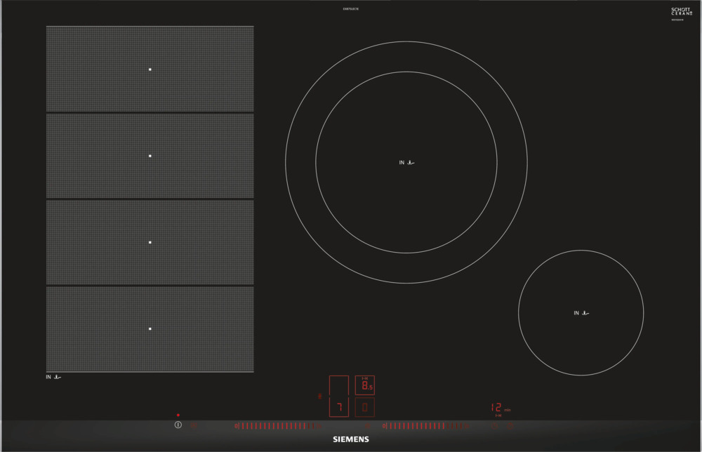 Модель Сименс EX875LEC1E входит в дизайн-линейку: iQ700. Цвет — черный. Материал самой поверхности: стеклокерамика. Управление этой моделью электронное. Для переключения уровней нагрева, выбора функций используются следующие переключатели: сенсорные/TouchControl, сенсорный слайдер/TouchSlider. Продвинутая система контроля за прибором делают его современным и отвечающим на главные запросы покупателя.