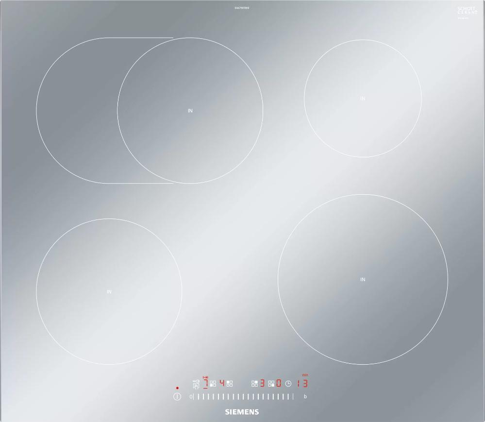 Варочная панель Siemens EH679FFB1E серебристого цвета органично дополнит кухонный интерьер в стиле Hi-Tech. Сенсорный слайдер подчеркивает эстетичный внешний вид модели и обеспечивает высокую точность управления. Прибор оборудован четырьмя индукционными конфорками различной мощности, в том числе, овальной, которая позволяет использовать крупногабаритную посуду — утятницу или судок для рыбы.