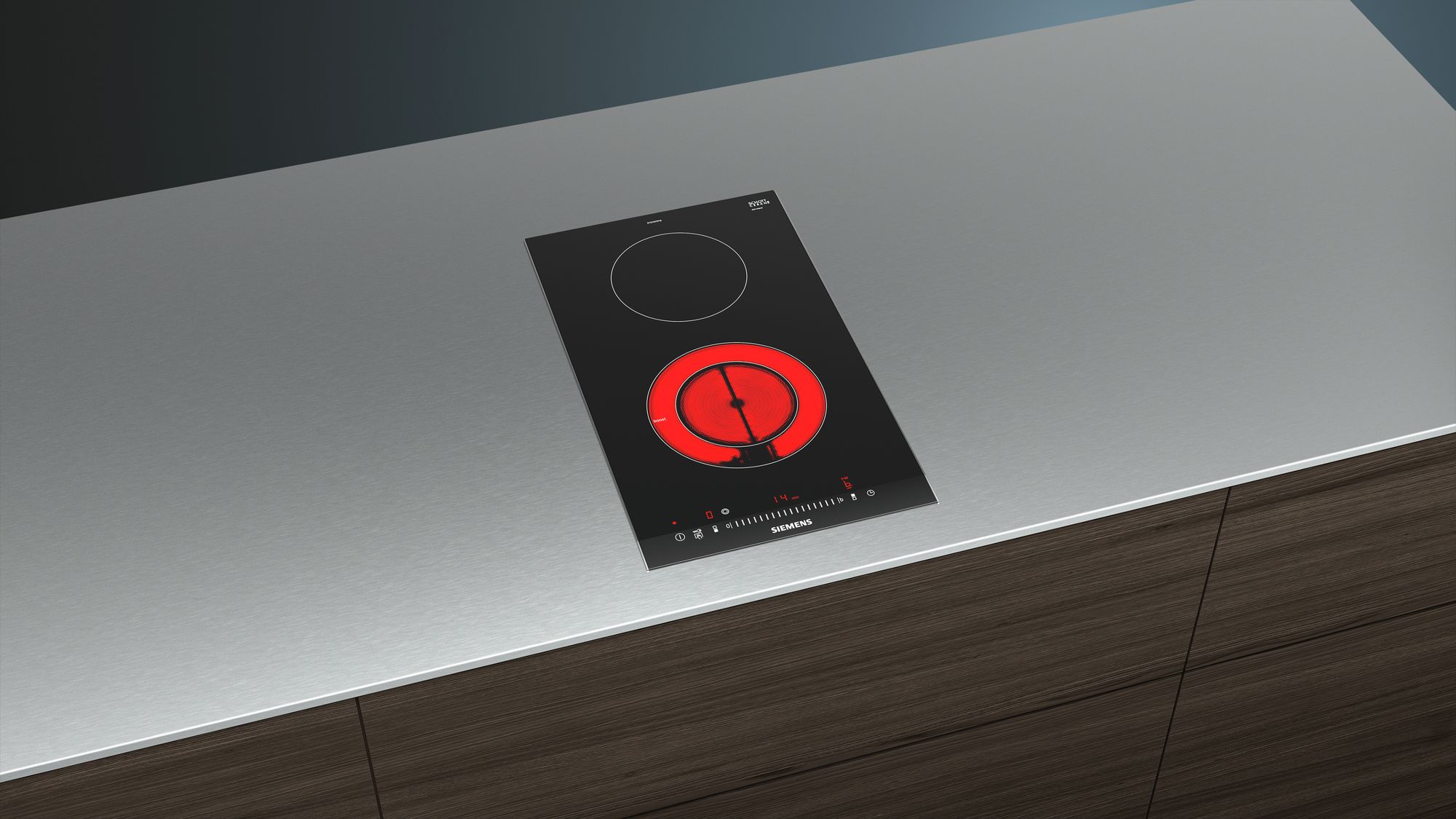 Siemens ET375FFP1E — стеклокерамическая варочная поверхность шириной 30 см. Сенсорная панель управления с удобным слайдерным регулятором позволяет задать мощность нагрева одним движением пальца. Удобству эксплуатации модели служит наличие многофункционального таймера, индикации остаточного тепла и функции восстановления рабочих параметров reStart.