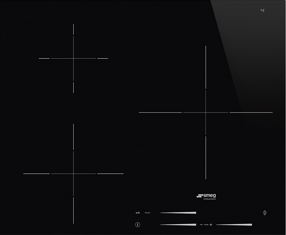 Независимую варочную поверхность из высококачественной, особо прочной черной стеклокерамики «Suprema» отличает стильная минималистичная разметка зон нагрева и скошенный край. Панель управления Touch control располагается на фронтальной части. Каждая зона регулируется при помощи отдельного слайдера, позволяющего задать мощность нагрева одним движением. Всего предусмотрено 14 степеней мощности. Для полного контроля в процессе приготовления пищи служат индикаторы оставшегося времени и уровня мощности. Индикация остаточного тепла позволяет избежать ожога, так как индикатор указывает на конфорку, которая нем успела остыть. Функция определения диаметра посуды способствует экономии электроэнергии. Режим Booster, временно увеличивающий мощность зоны нагрева, поможет быстро вскипятить воду или обжарить овощи. Справа расположена зона нагрева увеличенного диаметра и высокой мощности, которая позволит использовать большую посуду. При длительной работе, перегреве или проливании жидкости на поверхность устройство отключается самостоятельно. Модель может синхронизироваться с вытяжками от Smeg: для этого она оснащена функцией автовентиляции.