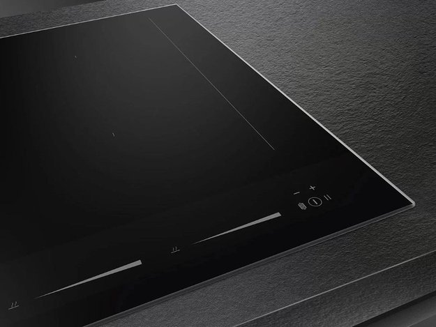 Модель шириной 90 см из стильной и прочной черной стеклокерамики с прямым краем встраивается в столешницу сверху или вровень с ней. Сенсорное управление Touch control предусматривает приготовления на 9 уровнях мощности. Каждая зона снабжена собственным слайдером для выбора степени нагрева и таймером окончания приготовления с автоматическим отключением и подачей звукового сигнала. Для задания мощности нагрева при помощи слайдера или для прекращения работы достаточно провести по нему пальцем. Функция поддержания тепла позволит сохранить готовое блюдо теплым, если обед или ужин запаздывает. Режим «Showroom» предназначается для изучения всех возможностей устройства без риска ожога и расхода электричества. Функция паузы позволит ненадолго отлучиться, прервав приготовление на короткое время. Панель управления оснащена индикаторами оставшегося времени приготовления и индикаторами остаточного тепла. Для быстрого закипания воды предусмотрена функция Booster, увеличивающая мощность конфорки почти в два раза. Если конфорку забыли выключить, она отключится автоматически — время отключения будет зависеть от выставленной мощности и других настроек.