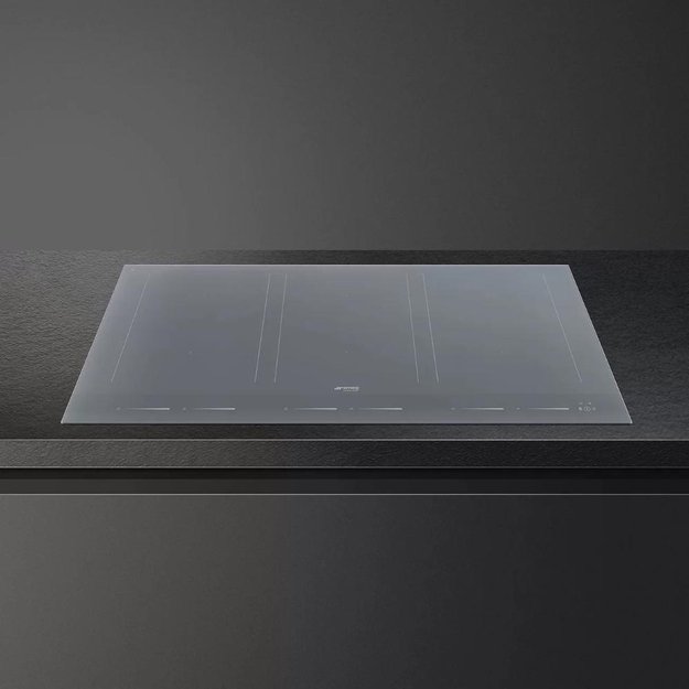 Индукционная варочная панель с шестью зонами нагрева и функцией Multizone для их объединения в прямоугольные конфорки. Покрытие — серебристая стеклокерамика с эффектом Stopsol. Система безопасности защищает панель от перелива и перегрева — она автоматически отключается в чрезвычайной ситуации. Для каждой конфорки есть отдельный таймер со звуковым сигналом окончания приготовления. Слайдерное сенсорное управление также индивидуально для всех шести зон.