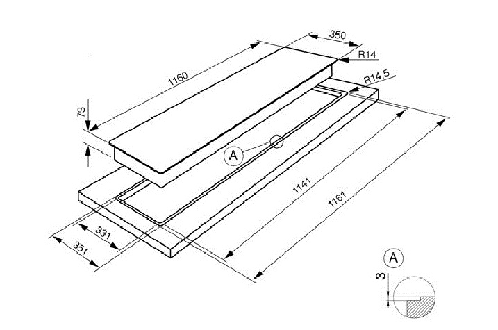 Отверстие в нише выполняют, исходя из размеров самой варочной панели — они должны соответствовать друг другу либо немного превышать размеры выреза. При выборе наиболее распространенной варочной панели с 4 конфорками в столешнице вырезается отверстие шириной 59 см и глубиной около 49-50 см. Толщина столешницы должна быть немного меньше, чем высота варочной панели, в противном случае панель придется заглубить, чтобы она не слишком выступала.
