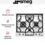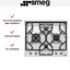 Smeg PGF64-4 — независимая варочная поверхность с основанием из нержавеющей стали. Панель оборудована четырьмя горелками различного уровня мощности, расположенными в ромбовидном порядке. Управление конфорками осуществляется при помощи поворотных переключателей с системой автоматического электроподжига.
