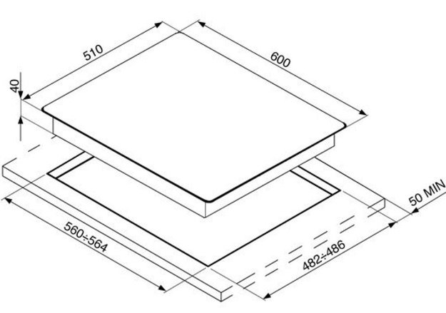 Отверстие в нише выполняют, исходя из размеров самой варочной панели — они должны соответствовать друг другу либо немного превышать размеры выреза. При выборе наиболее распространенной варочной панели с 4 конфорками в столешнице вырезается отверстие шириной 59 см и глубиной около 49-50 см. Толщина столешницы должна быть немного меньше, чем высота варочной панели, в противном случае панель придется заглубить, чтобы она не слишком выступала.