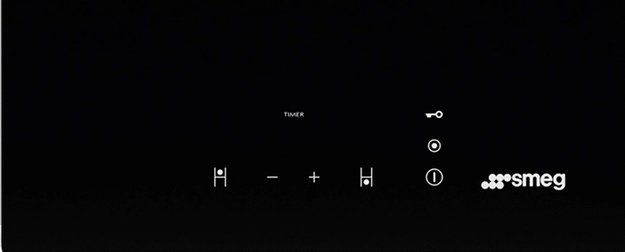 Задняя конфорка высокой мощности имеет контур расширения, позволяющий готовить в посуде продолговатой формы. В передней части находится сенсорная панель управления для регулировки мощности нагрева на 9 уровнях. Здесь же имеются кнопки блокировки управления от детей и главный выключатель на случай форс-мажора. Индикаторы остаточного тепла оповещают о том, что конфорка не успела остыть. Для автоматического отключения в конце приготовления предусмотрен таймер со звуковым сигналом. Функция «Showroom» позволяет продемонстрировать все возможности варочной панели Смег SE232TD1 без затрат энергии.