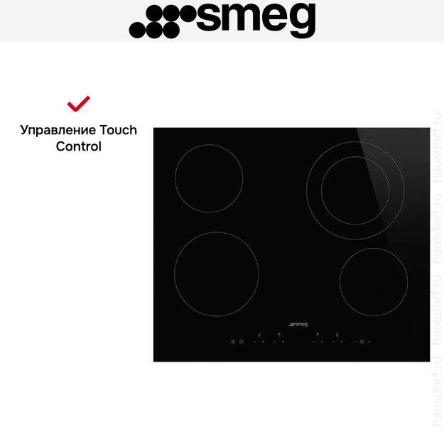 Smeg SE364ETD — стеклокерамическая варочная панель с сенсорным управлением. Девять регулируемых уровней мощности и четыре независимых таймера с акустическим сигналом позволяют максимально точно настроить работу прибора для приготовления блюд. Индикация остаточного тепла и блокировка управления от детей обеспечивают безопасную работу устройства. Пока конфорка горячая — специальный светящийся символ оповещает пользователя о том, что прикосновение опасно и может привести к ожогу. Как только температура опуститься до безопасных пределов — индикатор автоматически погаснет.